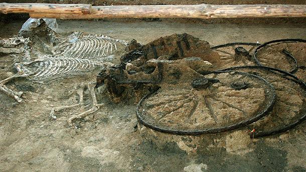 "Иманяри бяха копали в една могила и бяха стигнали до колесница – разказва археологът. – Бяха унищожили част от коша, предполагам, взели са и някакви предмети. Това наложи да започнем проучвания.  Изследвахме античната кола, тя се оказа много интересна: със запазени следи от дървената конструкция, с много украси. Така решихме да изследваме целия погребален ритуал, да намерим гроба на собственика на колата, ездитните коне, всичко, което съпътства поменалните практики на траките. Гробът беше изключително богат, може би най-богатият за този период – средата на І век, с извънредно много дарове. Това показва, че човекът, положен в него, е бил от много заможна фамилия, близка до последната управляваща тракийска владетелска династия. Самите дарове в него са били скъпи и тогава, за сега да не говорим. Сред тях има 11 монети – една златна и десет сребърни. Има и сребърни чаши, които са нещо изключително – вероятно царски дар, даден приживе на видния тракиец."